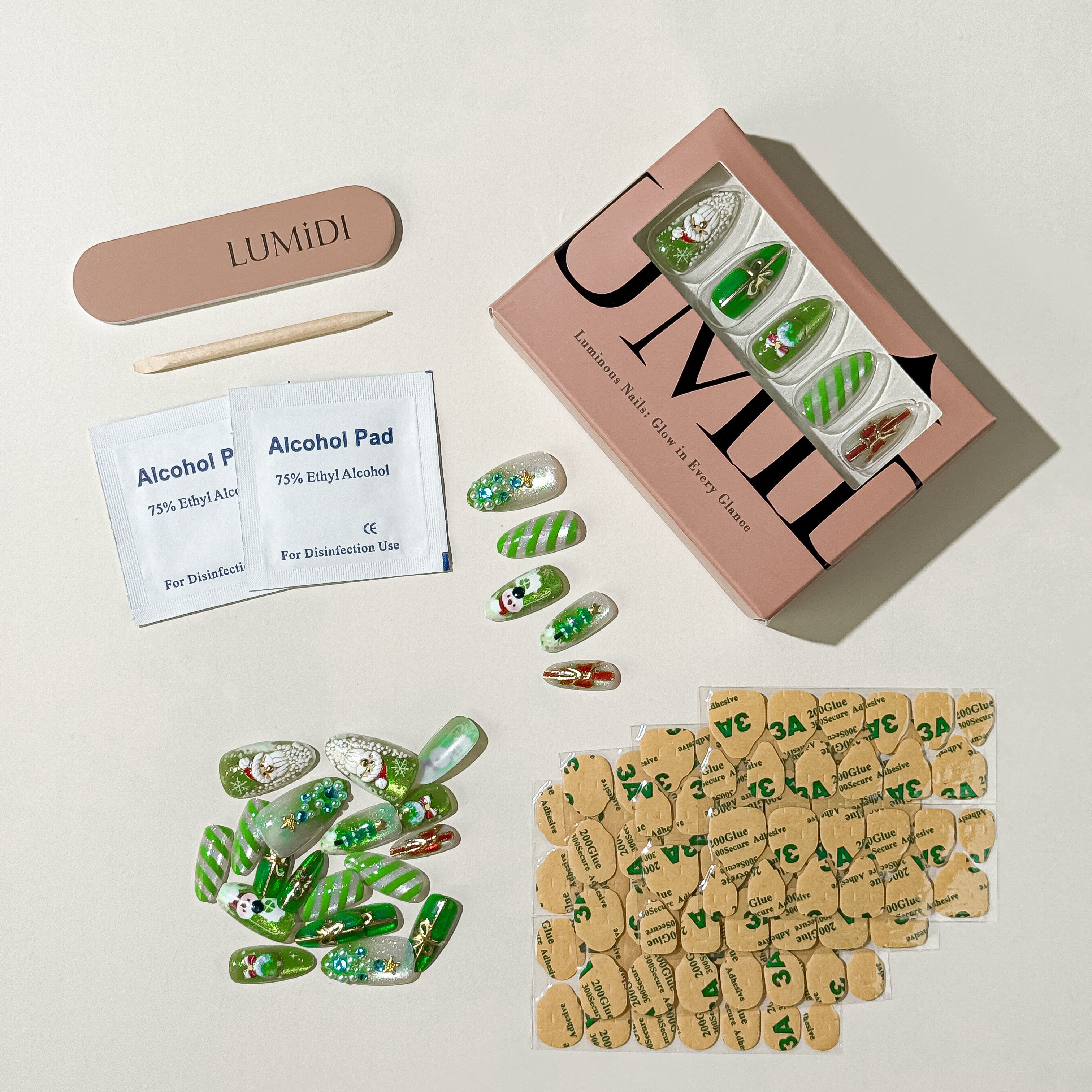 Full kit: Includes premium jelly glue, wooden stick, exclusive dual-grit nail file, and alcohol prep pads